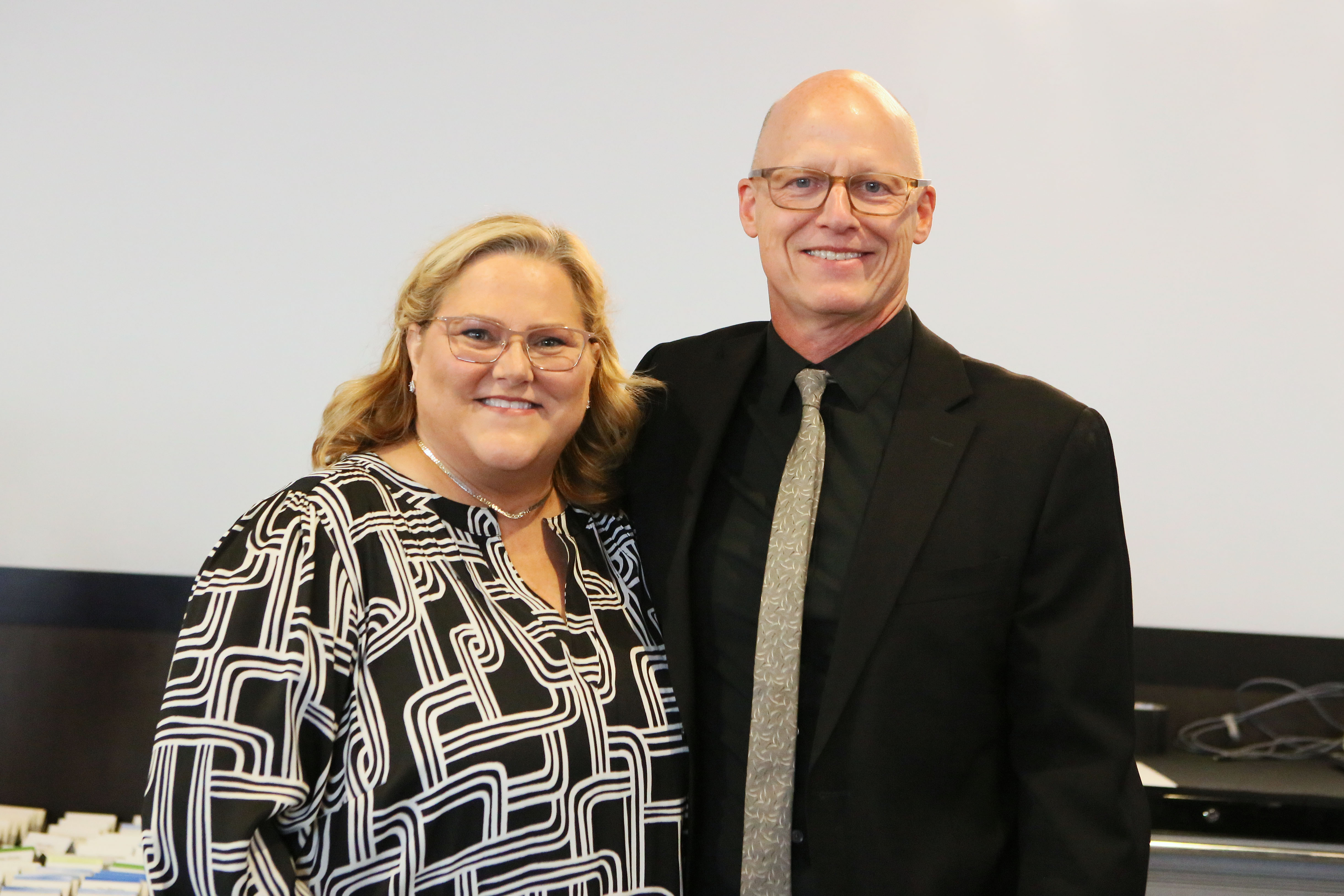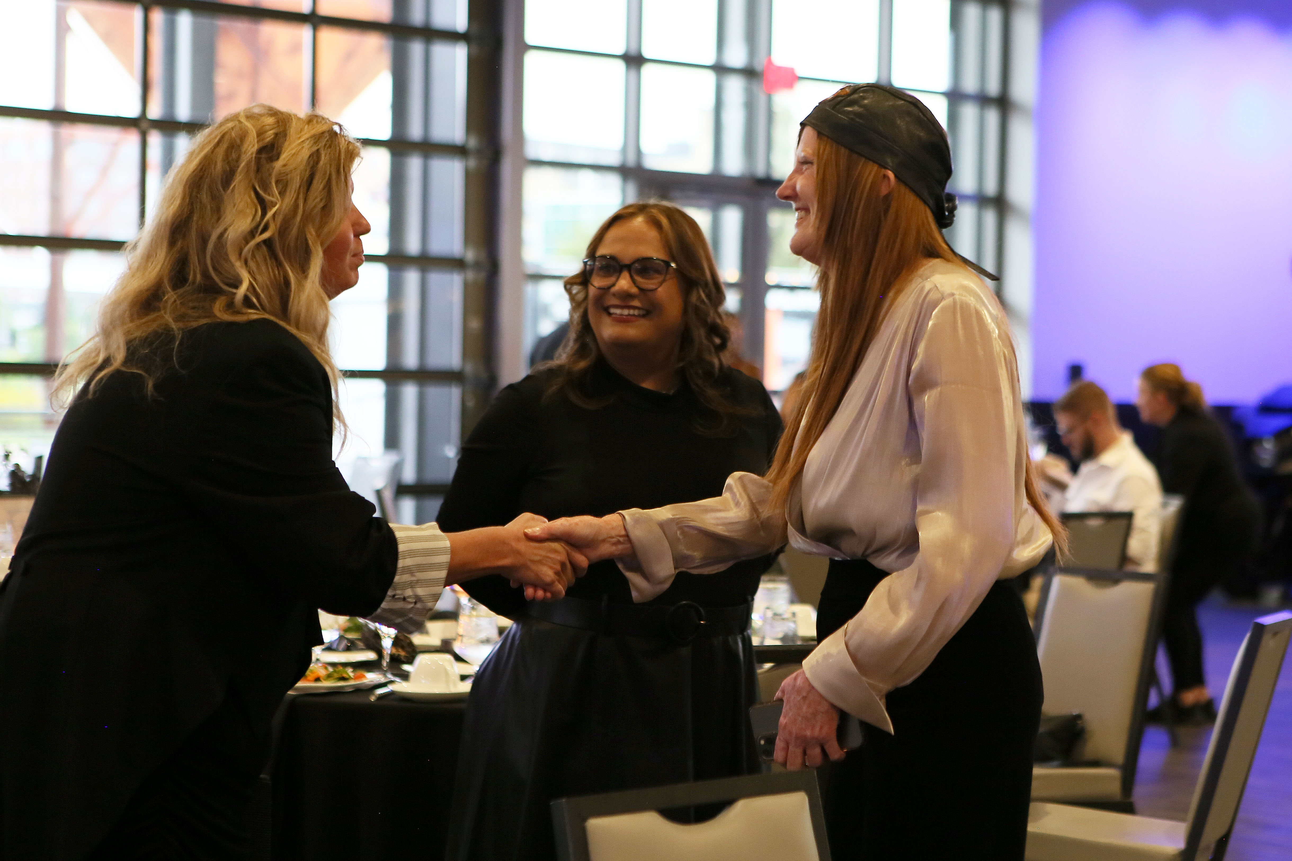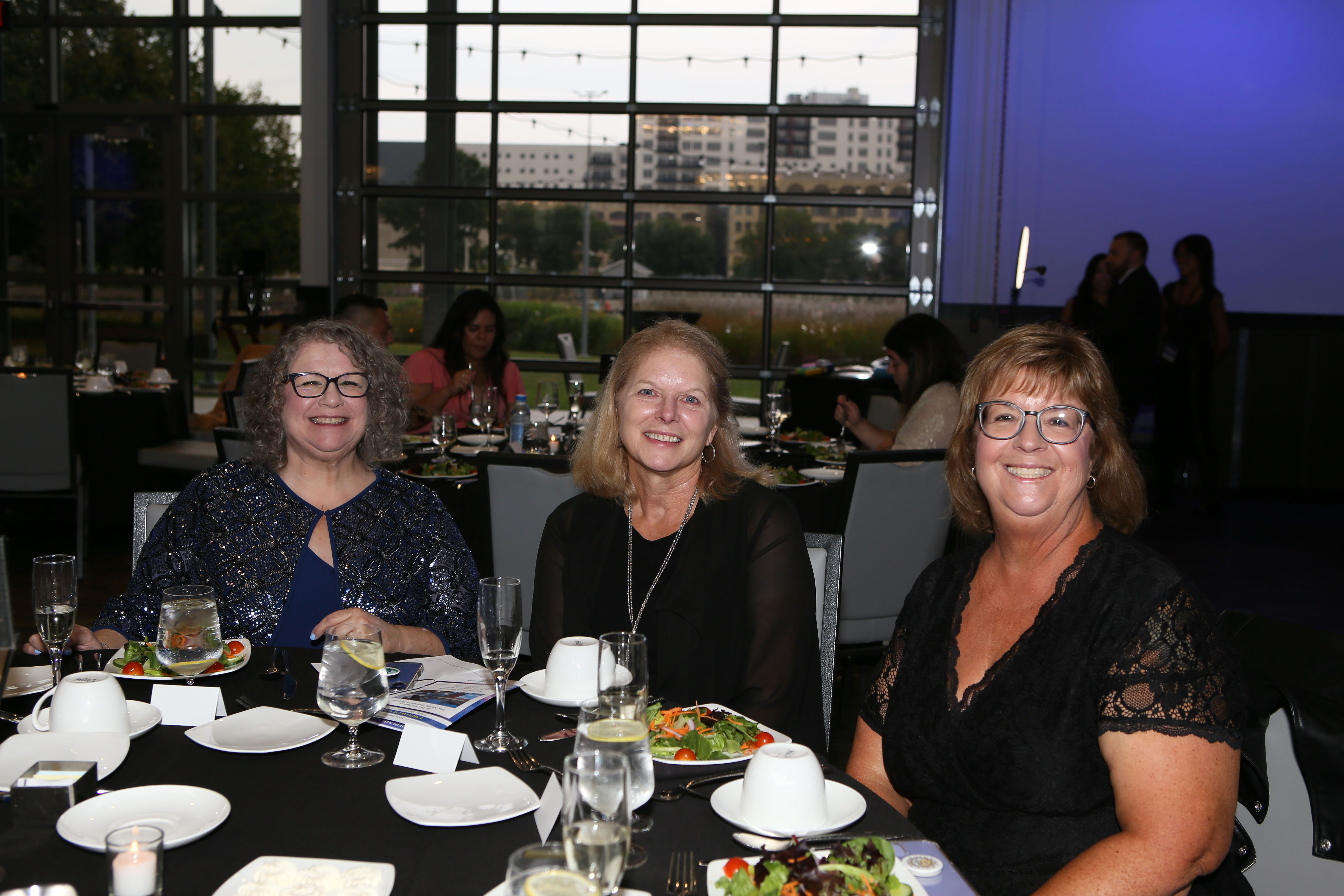 CFO Wendy Huot, CEO/President Marci Boucher, and auctioneer Dan Pronley at the podium