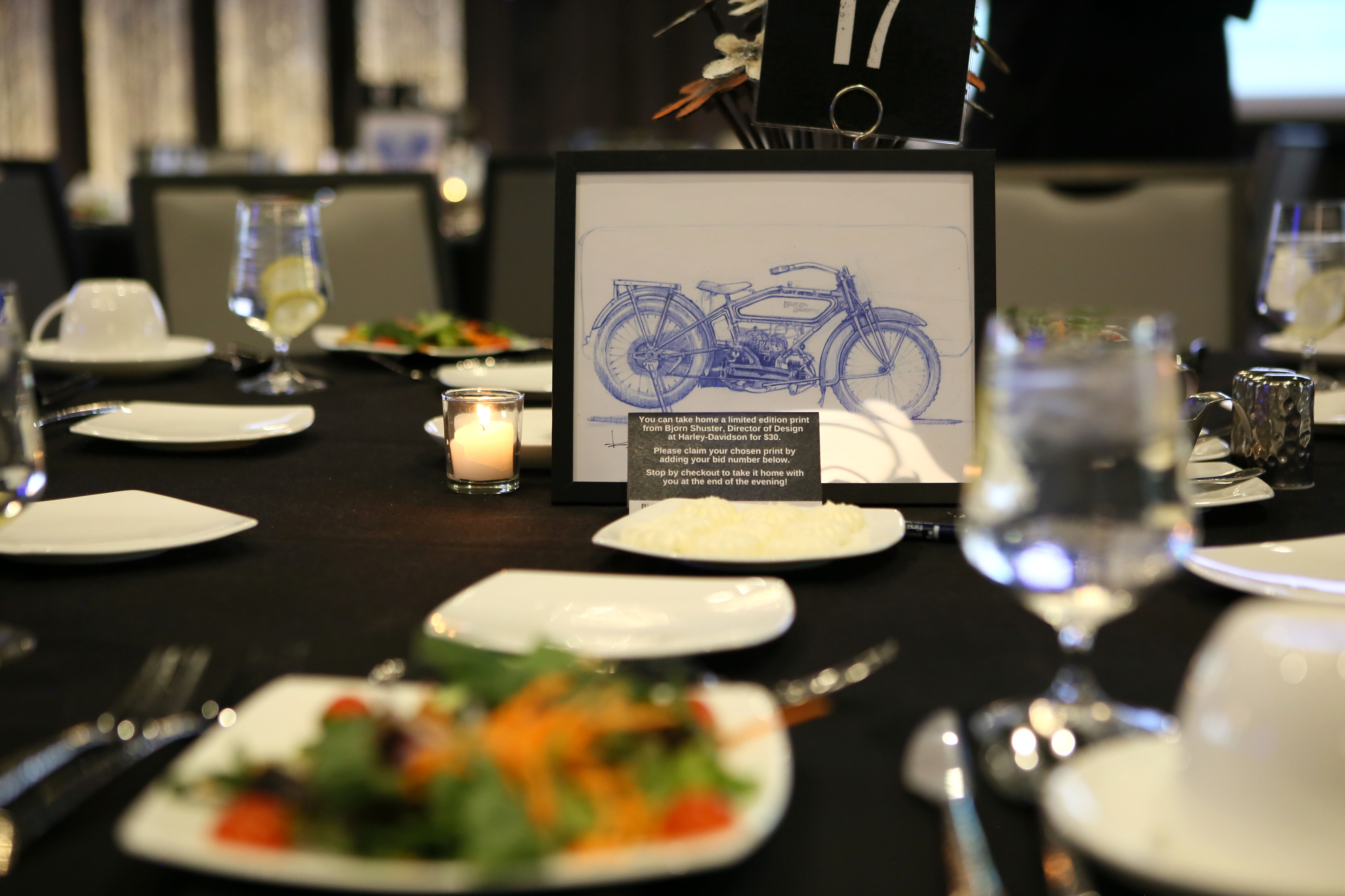 Everyone looked fabulous and really leaned into the theme of the night. Tying in the theme as well was our speaker Bjorn Shuster, Design Director of Harley-Davidson. We enjoyed Bjorn’s creative presentation, and his artistic contribution to our table designs.